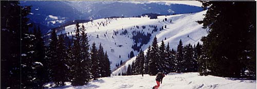 USA,コロラド州、ヴィエイルです。この写真はバックボウルと言う山の裏側の斜面です。ここは圧雪をしない 自然のままの雪で滑るエリアでした。本当にでかいゲレンデで1週間滑ったんですがコースの半分くらいしか 滑べれませんでした。本物のリゾートを見た!とゆう感じでした。ちなみにゲレンデの最上部は3,430mです。 back next