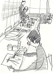 ![]() 早朝から猛烈な勢いで絵を描きま くる。「絶対ジムでトレーニング したい!」強い気持ちで仕事する って大事。願いは叶った。(笑) |