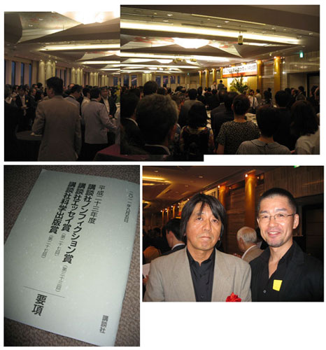 森達也さんが著書「A3」で講談社ノンフィクション賞受賞。 この本の装丁画をボクが担当したということで 贈呈式(東京會館)にお邪魔した。 この「A3」は雑誌(月刊)での連載時からボクが 挿絵を担当して2年7ケ月続いた仕事だったこともあり 今回の森さんの受賞はボクもとても嬉しく思った。 とても華やかな贈呈式・祝賀会でした。 >>>連載 >>>書籍 |
