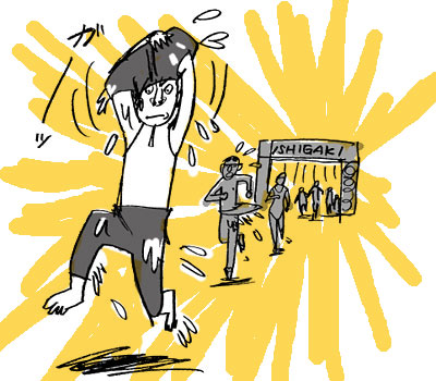 バイクの置いてあるトランジットまで裸足で走って行く。