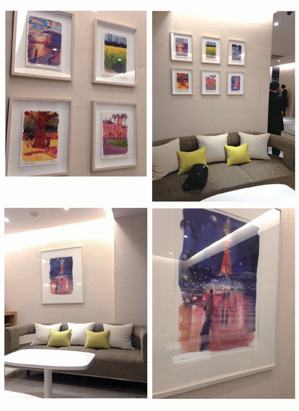場所は赤坂とうい都心のど真ん中 ビジネスにも観光にも最高の利便性です 展示されている絵はすべてボクの目で見た 東京の風景ばかり。 客室全146室すべてに、ロービー等にも 大きくした絵が飾られています。