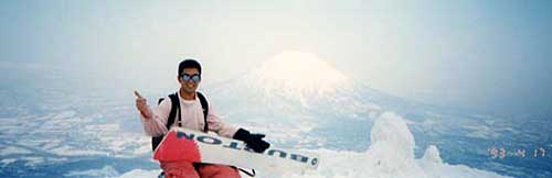 ニセコ(アンヌップリ山頂1309m)山頂まで登る。向こうの山は蝦夷富士と呼ばれている羊蹄山です。 雲が掛かっていないのは珍しいんですよ。ニセコはボクの好きな山で、何度となく滑りに行ってます back next