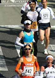 沿道の声援で彼女が女性ランナーの3番手であることが分かった。