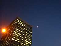 赤羽橋交差点から。 月が小さく見えるなぁ...