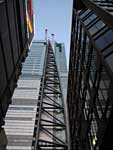 新橋〜汐留に建設中の高層ビル郡。見上げると首が痛くなるぐらいの高さ。空が狭いなぁ〜 |