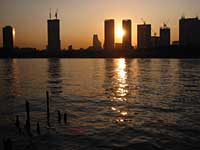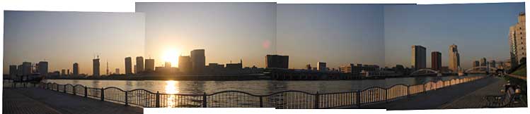 勝鬨橋から隅田川沿いの遊歩道で夕日が沈むのを観ていました。