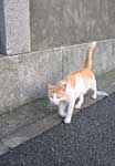 道端で猫と出会う。ほんの少しジャレて去って行く猫。