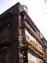 外観は蔦が絡み歴史を感じる 敷地内の木も大きくなっていて建物に大きな影を落とす