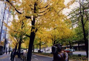 大阪のメインストリートのイチョウの葉も落ちはじめました。