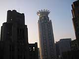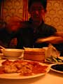 ![]() 対岸には個性的なデザインの超高層ビルが 街角でよく見かけた謎のキャラクター 北京ダックを食する。 建ち並んでいる。