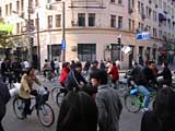 自転車天国。 そして道路の真ん中で車の過ぎるのを待つ。 何故か赤い色のデザインが多いようだ。