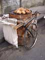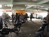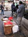 朝の通勤時間の道路は大変だ。 人々は赤信号でも渡る。 道端に出ている出店にタバコが売られていた。