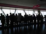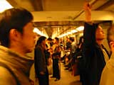 渡し船に乗り対岸へ 地下鉄で電車を待つ人々。