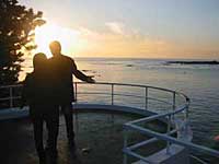 ![]() 屋上から見た夕日も最高。 船の上に入る様な気持ちになる屋上でした。 |