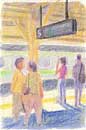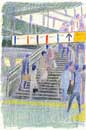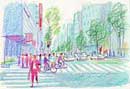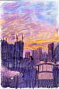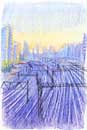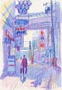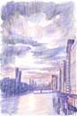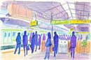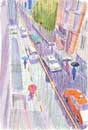 大阪や東京の都会の風景を描いています。