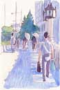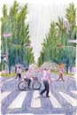 筆跡から感じる勢いと光を捕らえた表現で何気ない街の景色を主にしているのが特徴です。